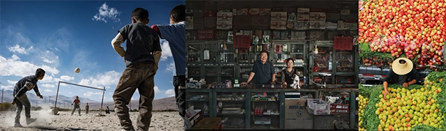 银奖作品展现出更为宽广的地理与文化视野。《帕尔米高原的足球少年》定格高原少年奔跑的活力时刻,彰显顽强的生命力;《乡村供销社》用纪实风格重现乡村生活图景,传递时代变革中的人际温情;《丰收的苹果摊》则以浓郁色彩与巧妙构图,烘托出农产品丰收的欢快气息。这三部作品共同构建了从高原到乡村、从个人到集体的影像叙事脉络。