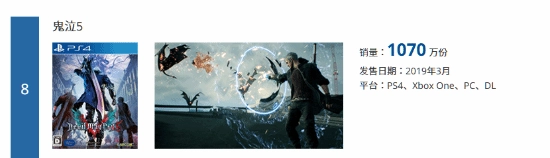 在销量前10的游戏里,《鬼泣5》是唯一不属于上述两个系列的作品,它以1070万份的销量位居第8位!