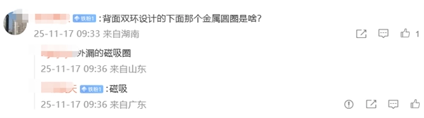 但最大的差异在于,模组下方还配有一个尺寸相同的圆环,由此构成了前所未有的“双环”标识。根据网友的推测,这个圆环大概率是用于磁吸充电的,而这也是Mate系列首次采用外露式的磁吸充电设计。