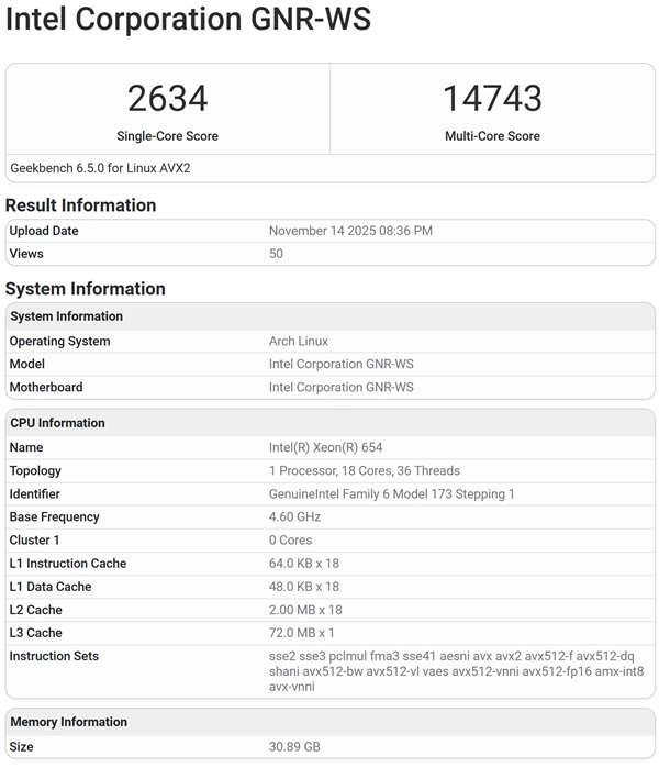目前已知只有至强654具备18个核心、4.8GHz的睿频频率,并且搭配了72MB的三级缓存。