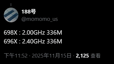 关于规格的信息目前还比较有限,仅了解到基准频率在2.7-3.5GHz之间浮动,三级缓存则分为48MB、72MB、144MB、192MB、336MB等不同档次。