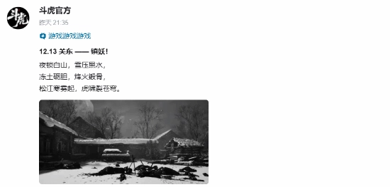 12月4日,《斗虎》游戏官方B站账号发布了一条新动态,内容为“12.13 关东——镇妖!”,这或许意味着官方将在12月13日推出游戏的新预告视频,或是公布其他最新消息。