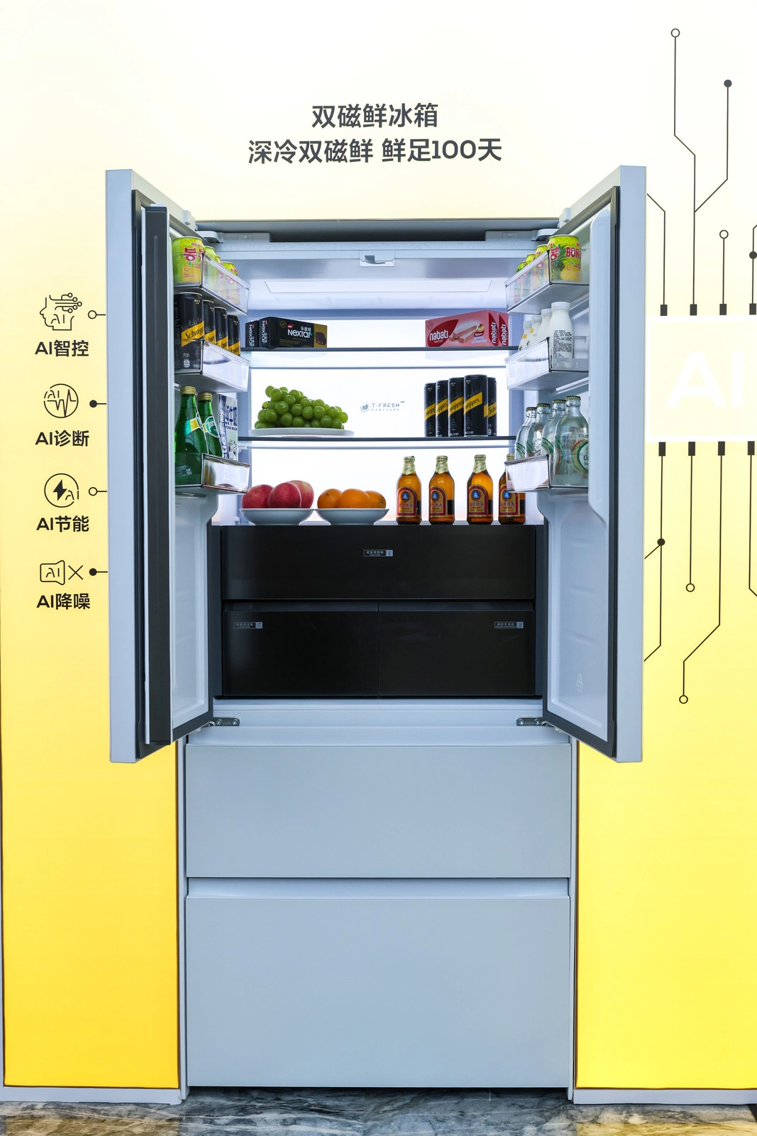 在AI健康应用场景中,TCL智能终端推动主动感知、决策与交互体验的升级,助力家电产品在健康、节能及便捷性上实现优化。其中,TCL小蓝翼新风空调集成AI睡眠、AI新风等功能,使空调从单纯调节温度转向聚焦空气质量改善与健康睡眠管理。而TCL双磁箱冰箱与TCL AI超级筒洗烘一体机,则借助AI技术让产品回归核心健康属性,超越传统的“食材不变质”和“衣物洗干净”的基础需求。TCL双磁鲜冰箱配备AI高灵敏温度传感器,能智能调控温度,最大程度保留食材的新鲜度与原汁原味。TCL AI超级筒洗烘一体机拥有1.31的超高洗净比,搭载全新升级的AI超级筒,创新融入AI智慧洗Pro、AI智能柔烘等先进洗护技术,可持续学习并适应用户的洗衣习惯,提供定制化的洗护方案。