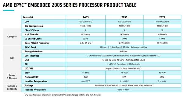 EPYC嵌入式2005系列有三款不同型号: