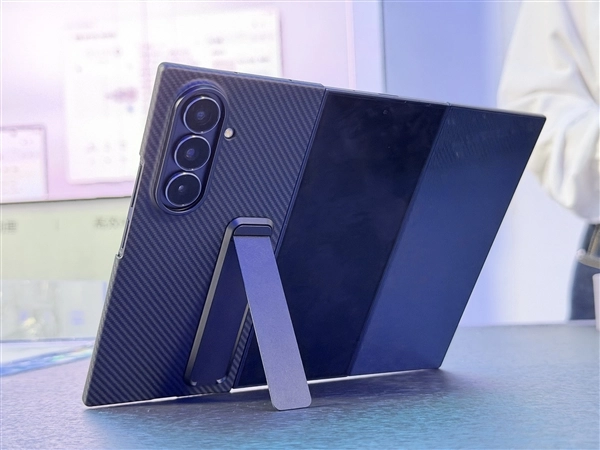 值得一提的是,三星此次在产品包装中额外配备了一款凯夫拉材质的官方保护壳。这款保护壳不仅兼具轻盈与抗摔特性,其背部还设计有一体式折叠支架——展开后可稳固支撑手机,无论是横向放置观看视频,还是进行视频会议,都无需再额外购置支架,十分便捷。这样的细节设计,尽显三星的风格。