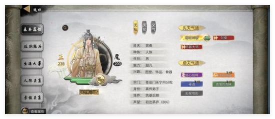 可选超凡特性:水力迸射、媚骨天成、疾行英姿、黄巾天师风范、近身肉搏情谊、煞气萦绕、双修妙法、苦中作乐、活力满溢、灵力之种初萌、风力迸射、妖术初窥、菊花灼痛、血灵初涉、武法初通、水力再绽、先承后击、灵力之芽破土、灵力之树渐长、振奋激昂、随心驾驭、小宝之盾护体、鬼修初入门道、双灵共生之态