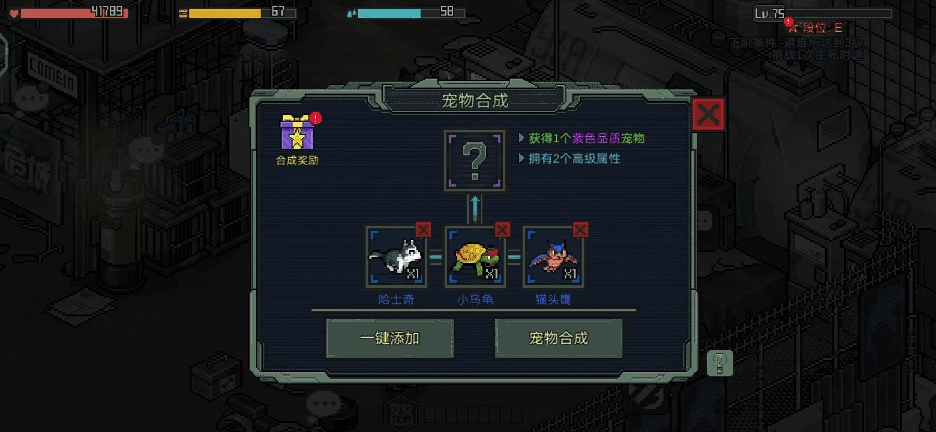 以上就是像素危城游戏里宠物的合成方式啦,玩家利用低品质宠物可以合成高品质宠物,而高品质宠物能为玩家带来更为显著的战斗力提升。希望这篇文章能给你带来帮助,更多游戏攻略请关注爱帮下载。
