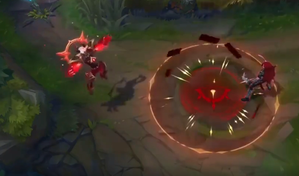泽拉斯的这款皮肤在释放Q技能后,路径上会出现一道红色火焰条,视觉上极具杀伤力。其二技能是向空中抛出一枚火球,落地时会形成带有鲜红色塔罗牌图案的法阵,同时伴随虚空湮灭的特效。E技能则能投掷火球,而开启大招后,他的铠甲会脱落环绕在身体周围,随后便可持续不断地释放火球。
