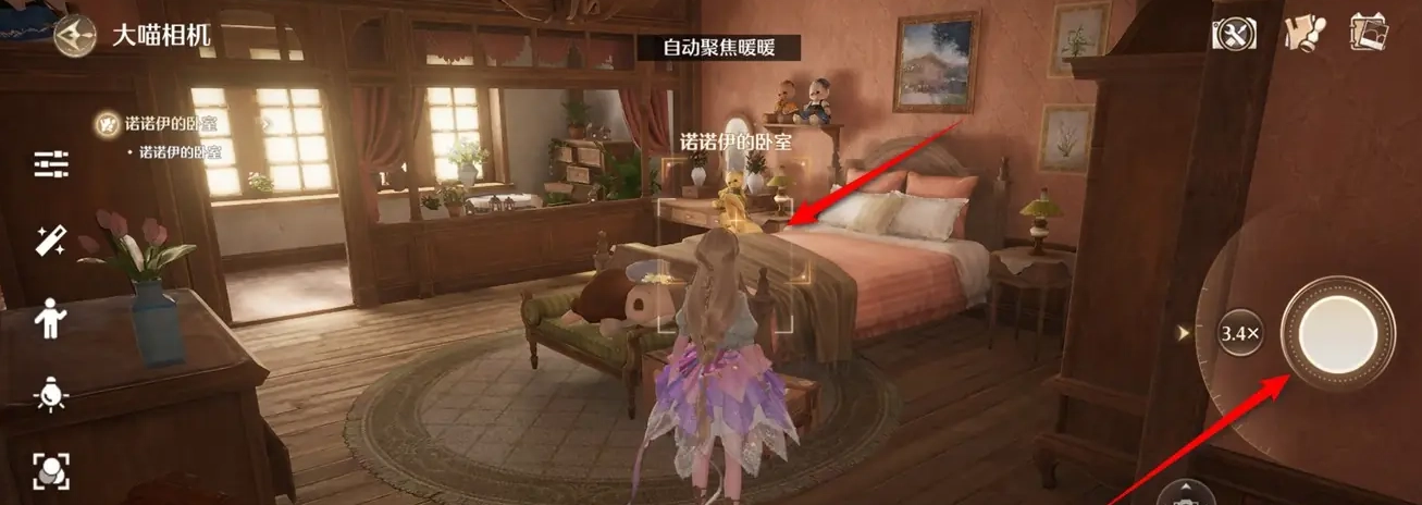 3、当准确识别出“诺诺伊的卧室”后,点击相机快门进行拍照。