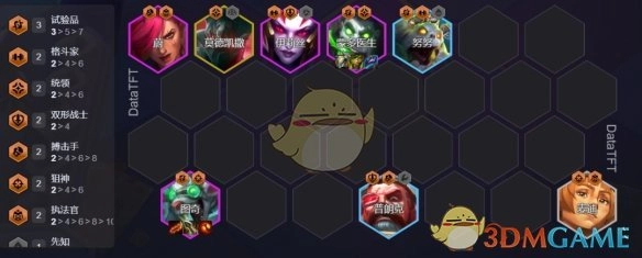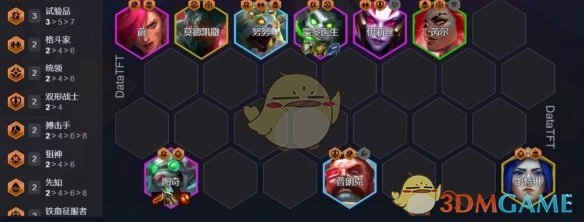 8在8人口进行D牌操作时,以3试验拼为根基来完善羁绊。要是没有D到铁男,能够选用任意统领卡来填补。如此一来,能够达成7羁绊,稳定实现全队21%以上的增伤效果。