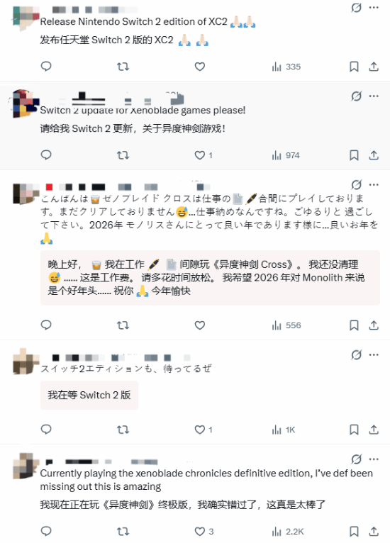 在2025年临近尾声时,《异度神剑》系列的开发商Monolith Soft通过官方推特宣布了休假相关的消息,这条动态随即受到了粉丝们的高度关注。除了表达感谢之情,粉丝们几乎一致催促官方“尽快把前作升级适配到NS2平台”。
