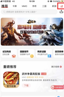 1. 开启66手游APP,轻点右上角;
